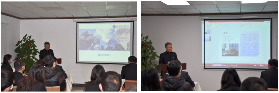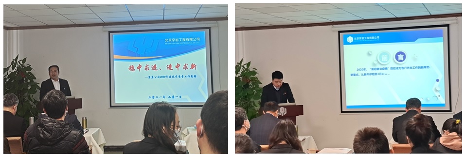 会议中,公司副总经理吴言军作《“稳中求进、进中求新”2020年度技术质量工作报告》,公司副总经理姚宾科作《“行稳致远,奋勇超越”2020年度生产经营报告》,新加入的副总工程师李军和即将加入公司的副总工程师孙艳林分别进行了发言,地质工程室主任、岩土工程一部负责人、综合办公室职工代表分别作了述职报告。