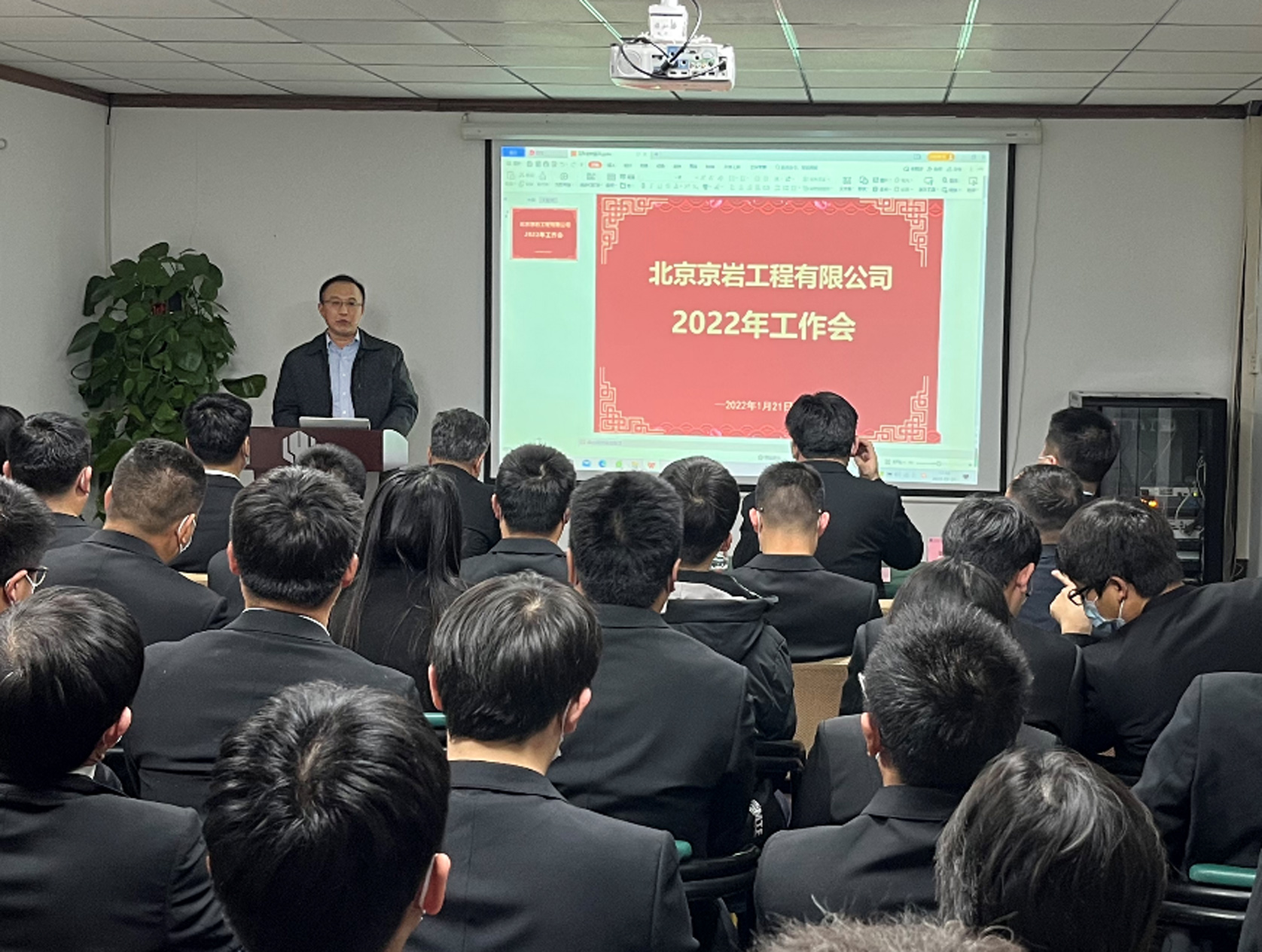 1月21日,公司2022年工作会隆重召开,北勘院副总经理张彦峰、京岩公司总经理贾志远、京岩公司管理层及全体职工37人出席大会。