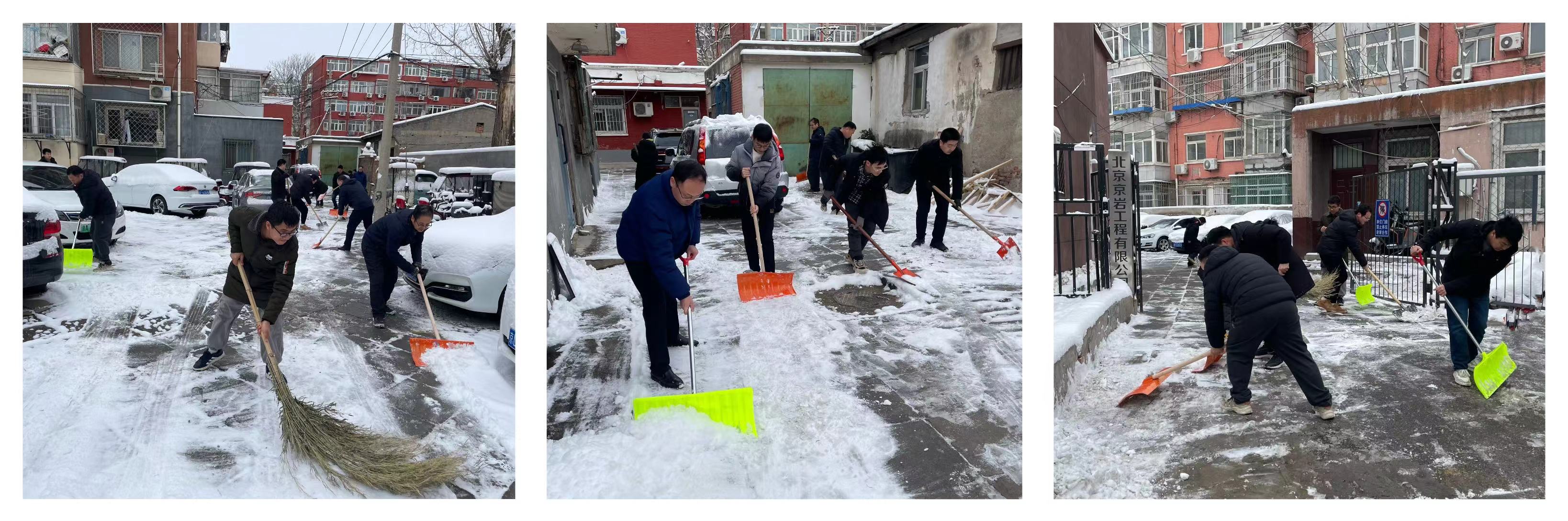 昨日至今晨,北京迎来了龙年首场降雪,积雪深度达10厘米。为积极消除安全隐患,确保道路交通安全和群众出行方便,京岩公司党支部组织党团员及职工群众开展扫雪除冰活动。
